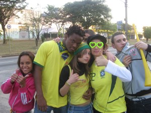 Yesterday we visited the families of the kids that we work with from Iguatemi, and in the afternoon we watched the Brazil soccer game at the main Day Center. We won, but the game wasn’t that good.